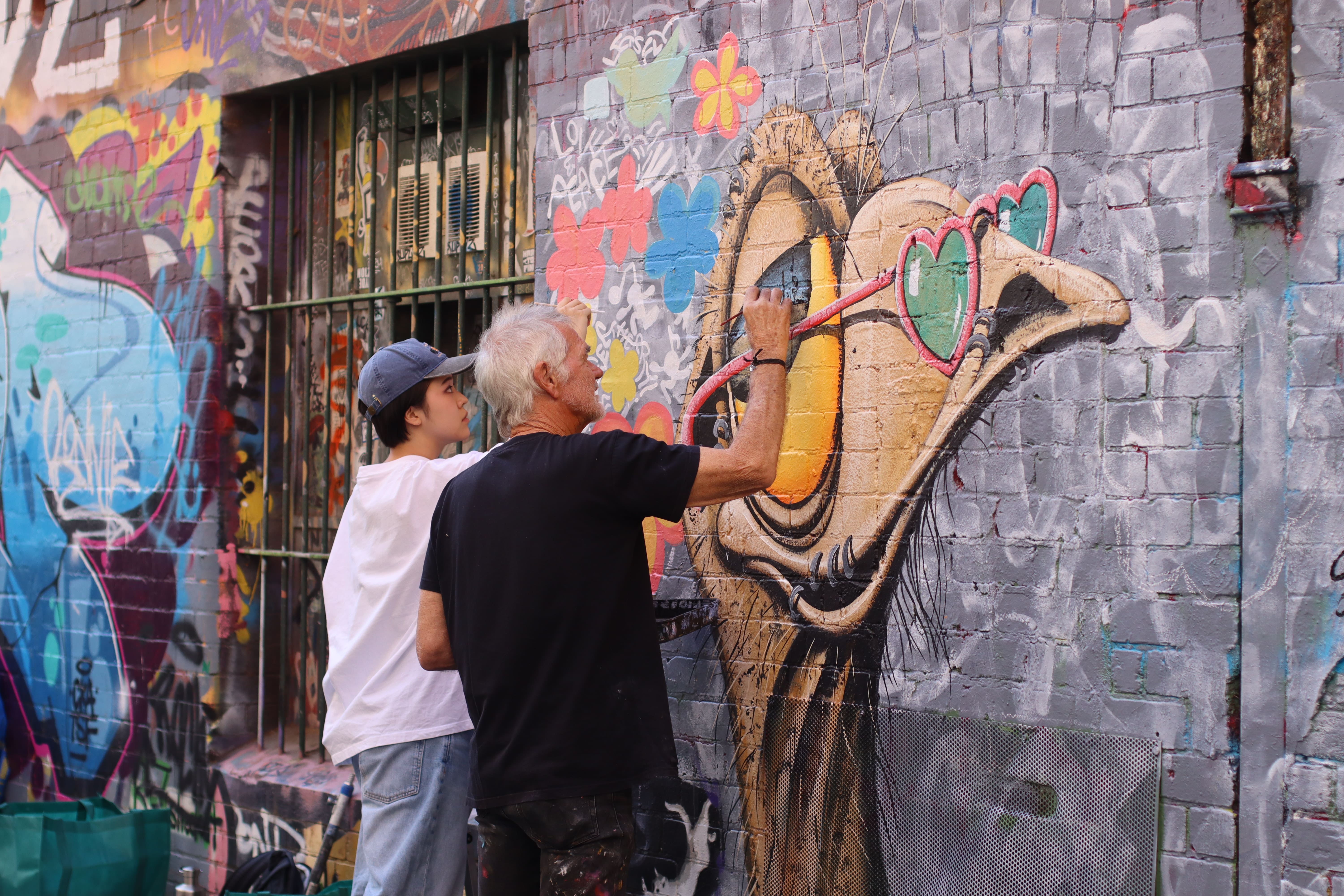 Featuring his iconic emu character, Mamimun added a wildly colorful “flower garden afro” to its head, bringing to life a vibrant, joyful inner world.
